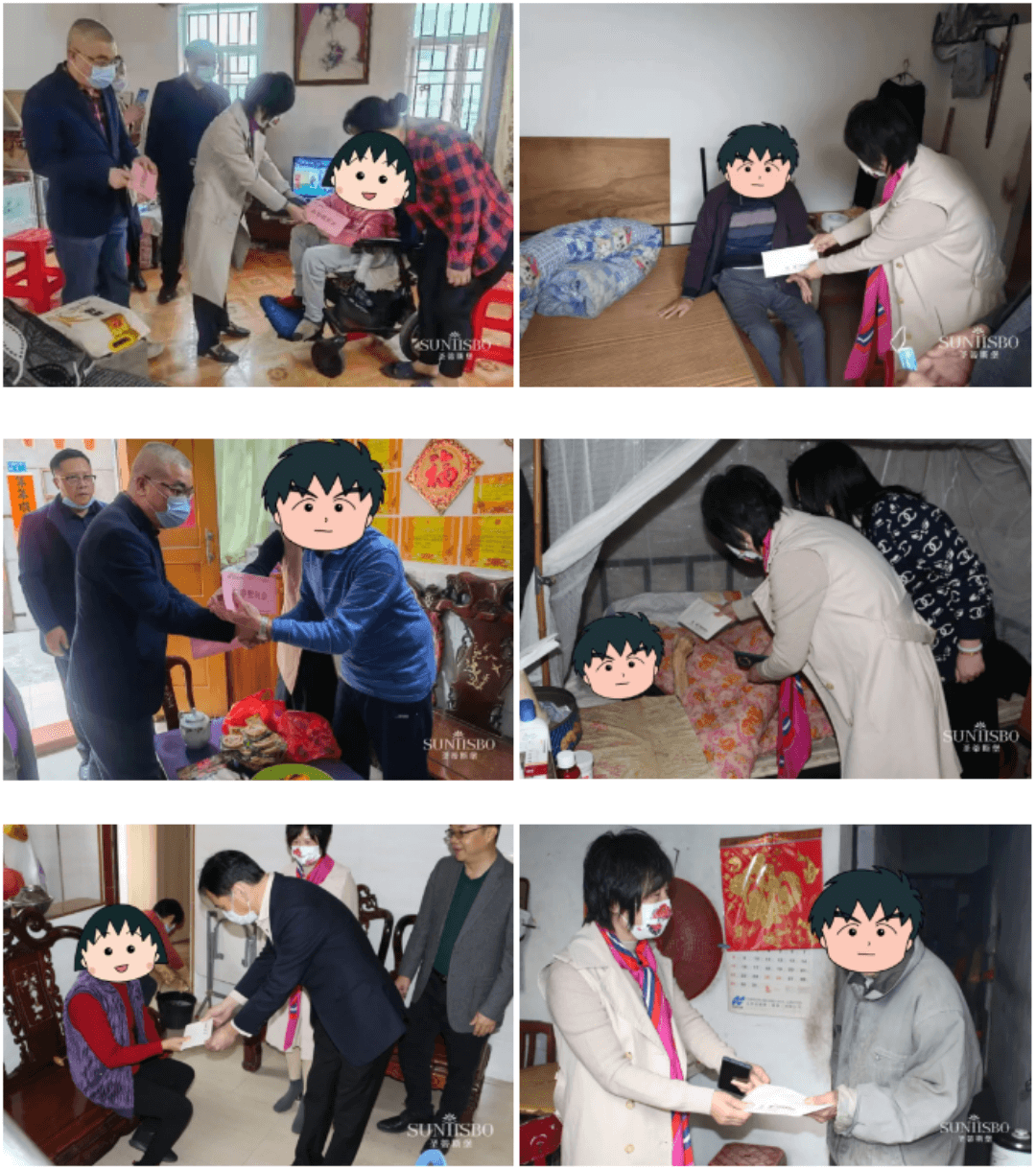 寒冬腊月,春节将至。2022年1月17、18日,米兰集团副董事长梁碧霞女士亲自带领集团员工分别前往常平土塘社区、虎门镇赤岗社区、虎门镇南面社区,探望慰问孤寡老人、残疾人和社区寿星,并为他们送去了春节礼品和慰问金,为他们送去一年一度的新春关怀和温暖。在疫情的严防中,让他们体会到社会和企业的悉心关怀,感受到别样温暖的春节氛围。